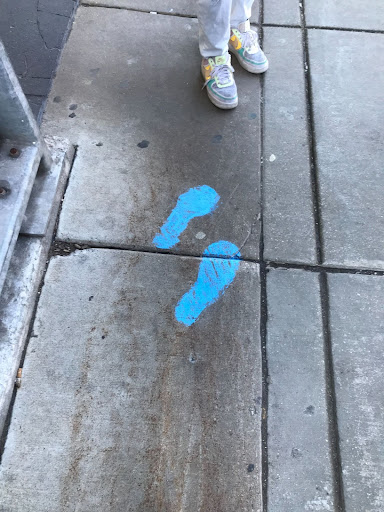 While testing this prototype with one of my group members (we tallied up how many people walked by and noticed the footsteps), I raised the notion of control data. Before these two tests, we had no indication that the footsteps would be even matter to how many people looked past the museum. We needed something to compare it to.